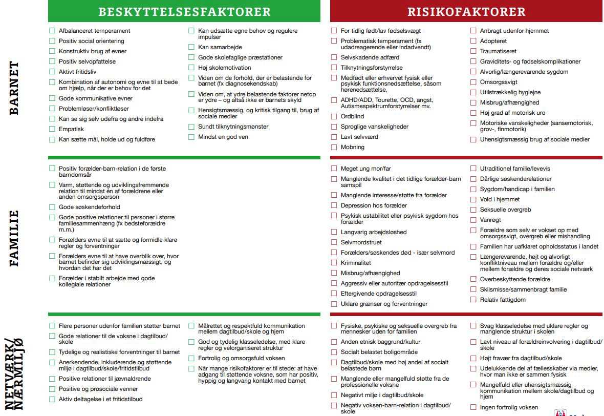 En del af det fundament vi står på, når vi er opmærksomme på børns trivsel, er vores kendskab til risiko- og beskyttelsesfaktorer. De hjælper os nemlig til at være bevidste om, hvilke faktorer i barnet liv der skaber øget risiko for mistrivsel, og hvilke faktorer i barnets liv og omgivelser, som er med til at beskytte barnets trivsel.