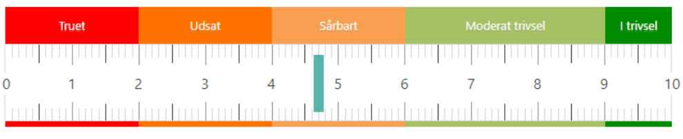 Trivselslinealen er inddelt i 5 grupper: trivsel, moderat trivsel, sårbart, udsat og truet